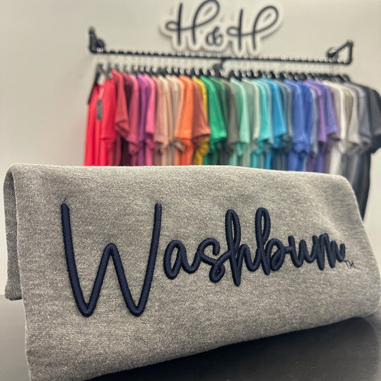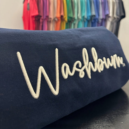 Washburn PUFF Script ~ Navy Embroidery ~ HHWU166 ~ Licensed Washburn Apparel