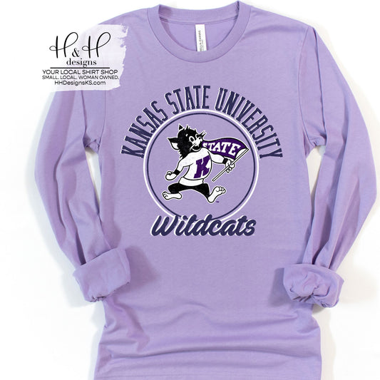 Kansas State Distressed Round on Dark Lavender ~ HHKSU177