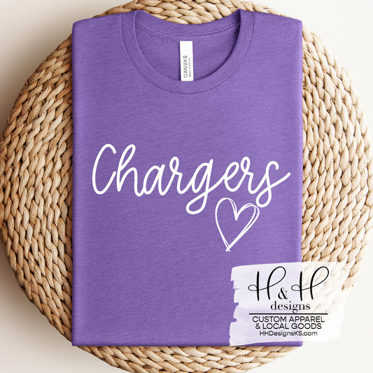 Chargers Script with Heart - Topeka West PTO Fundraiser