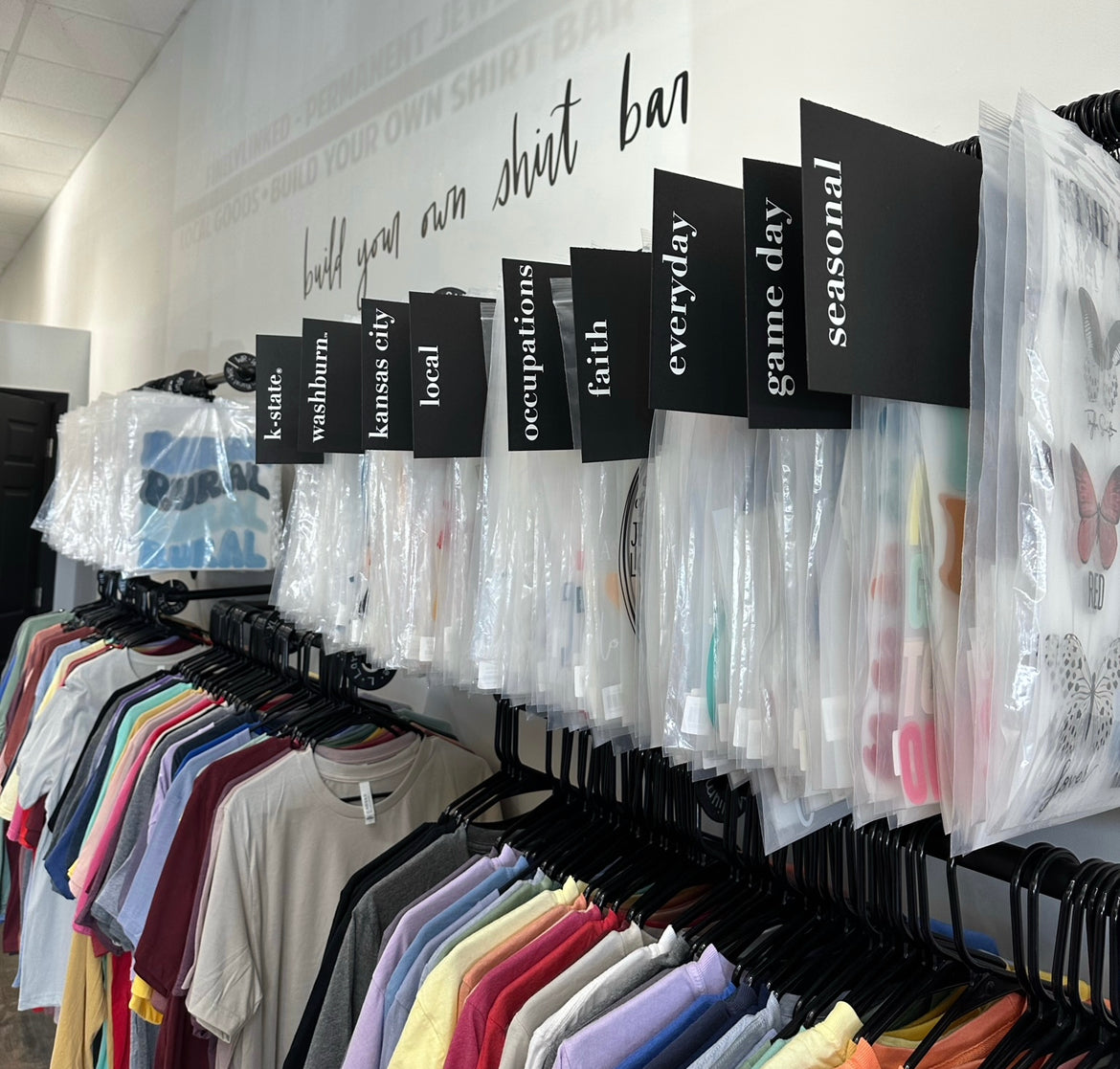 Our Build Your Own Shirt Bar™ is a tee experience like you've never seen! Visit us in store to create a tee while you wait!