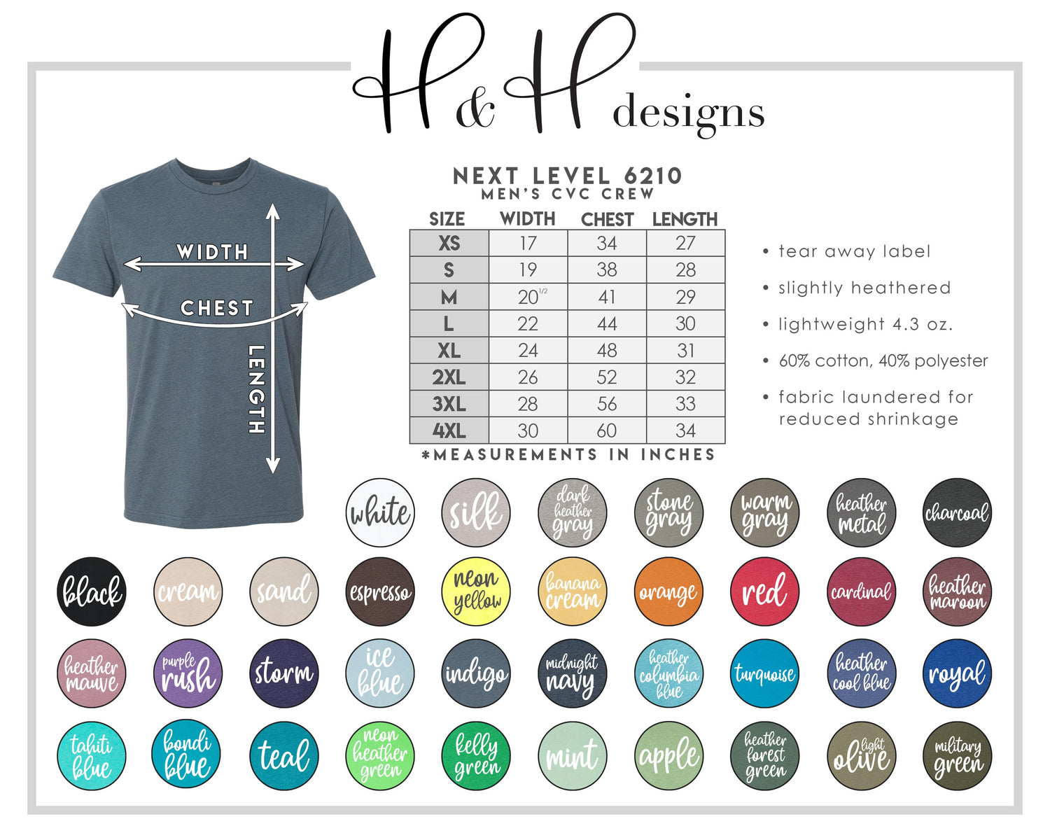 •Not sure of your size? We recommend measuring your favorite tee and comparing it to the measurements included on our color charts, or visiting us in store to try on!