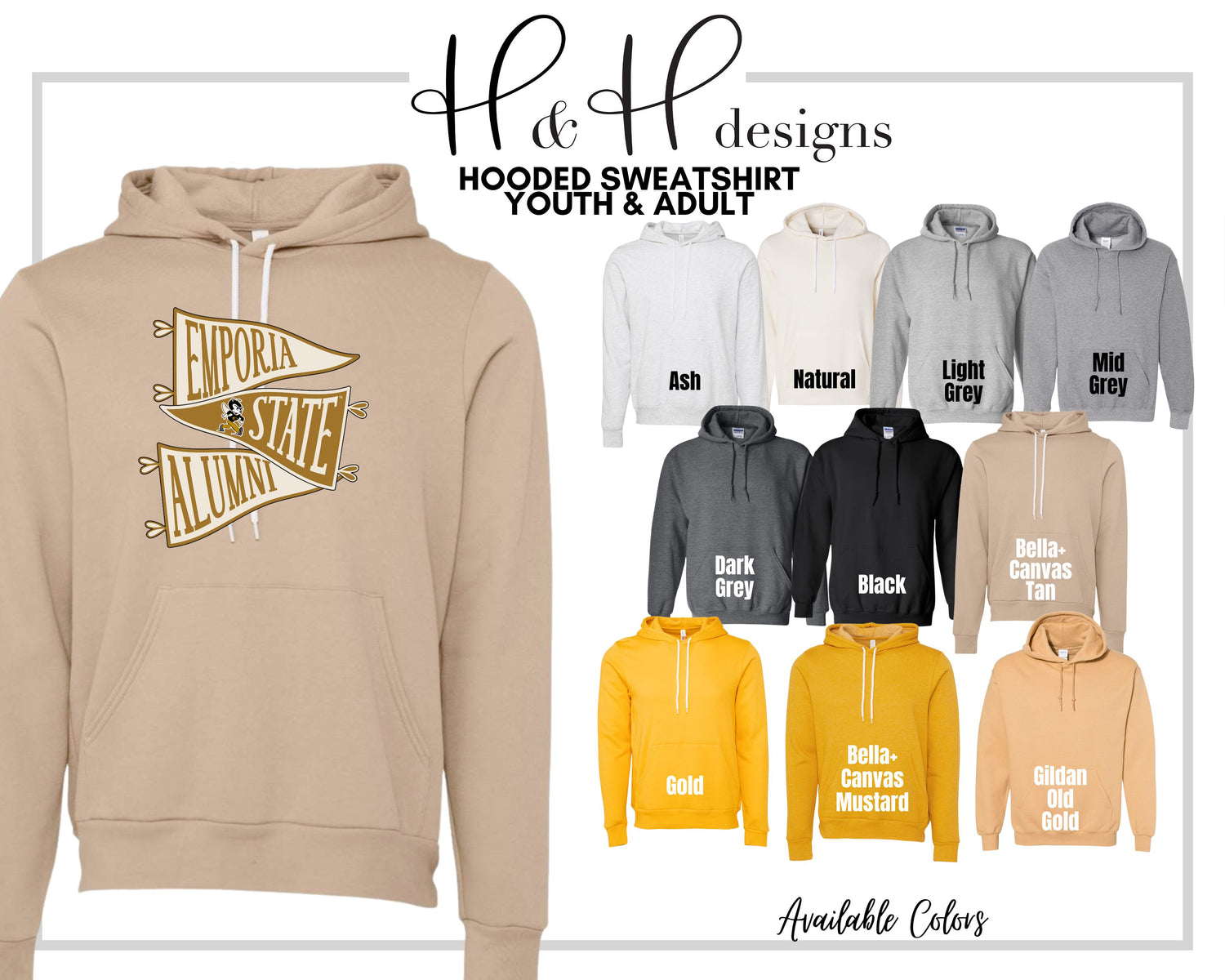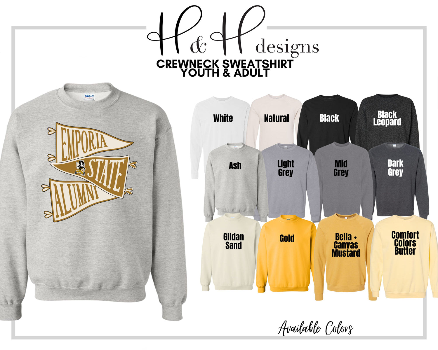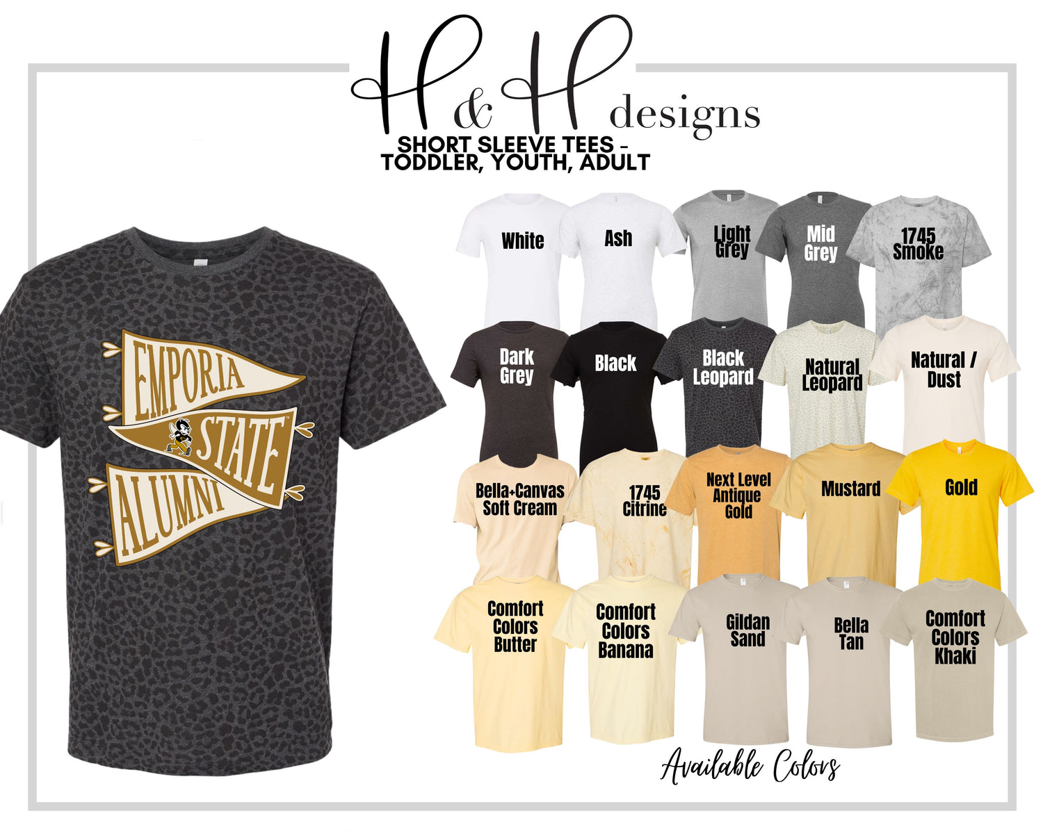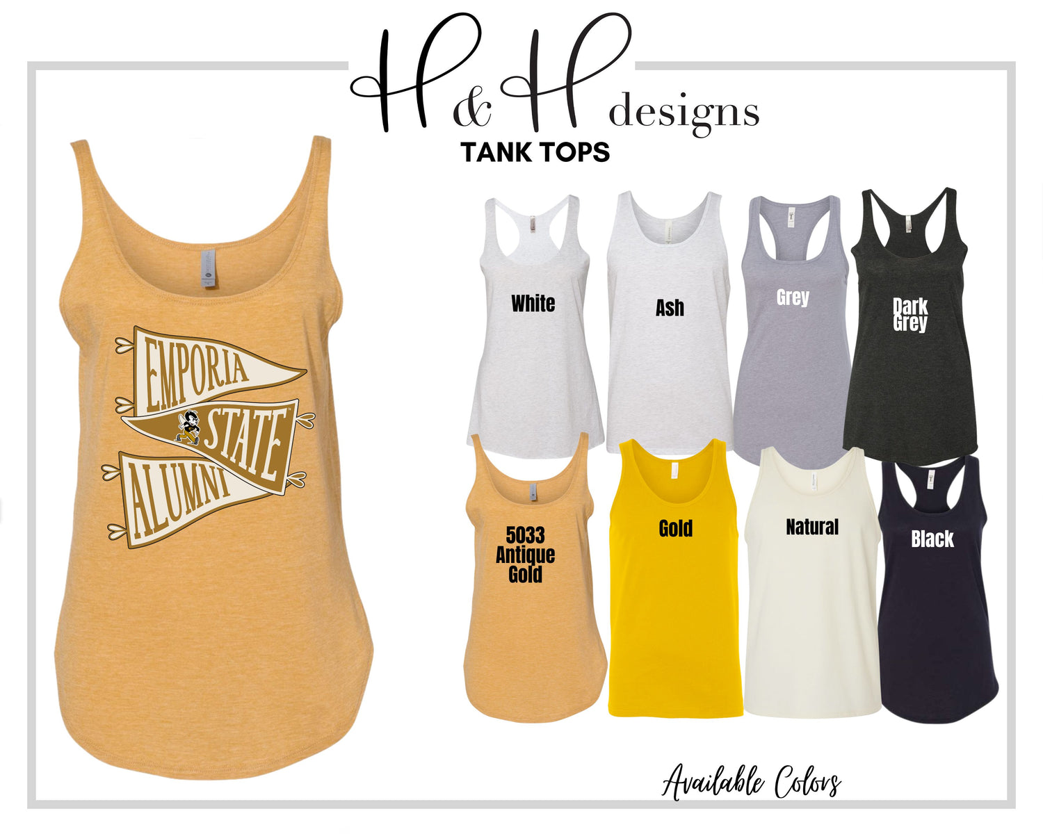 •H&H designs is a licensed Emporia State University retailer! All of our designs follow brand guidelines & are approved by the University!