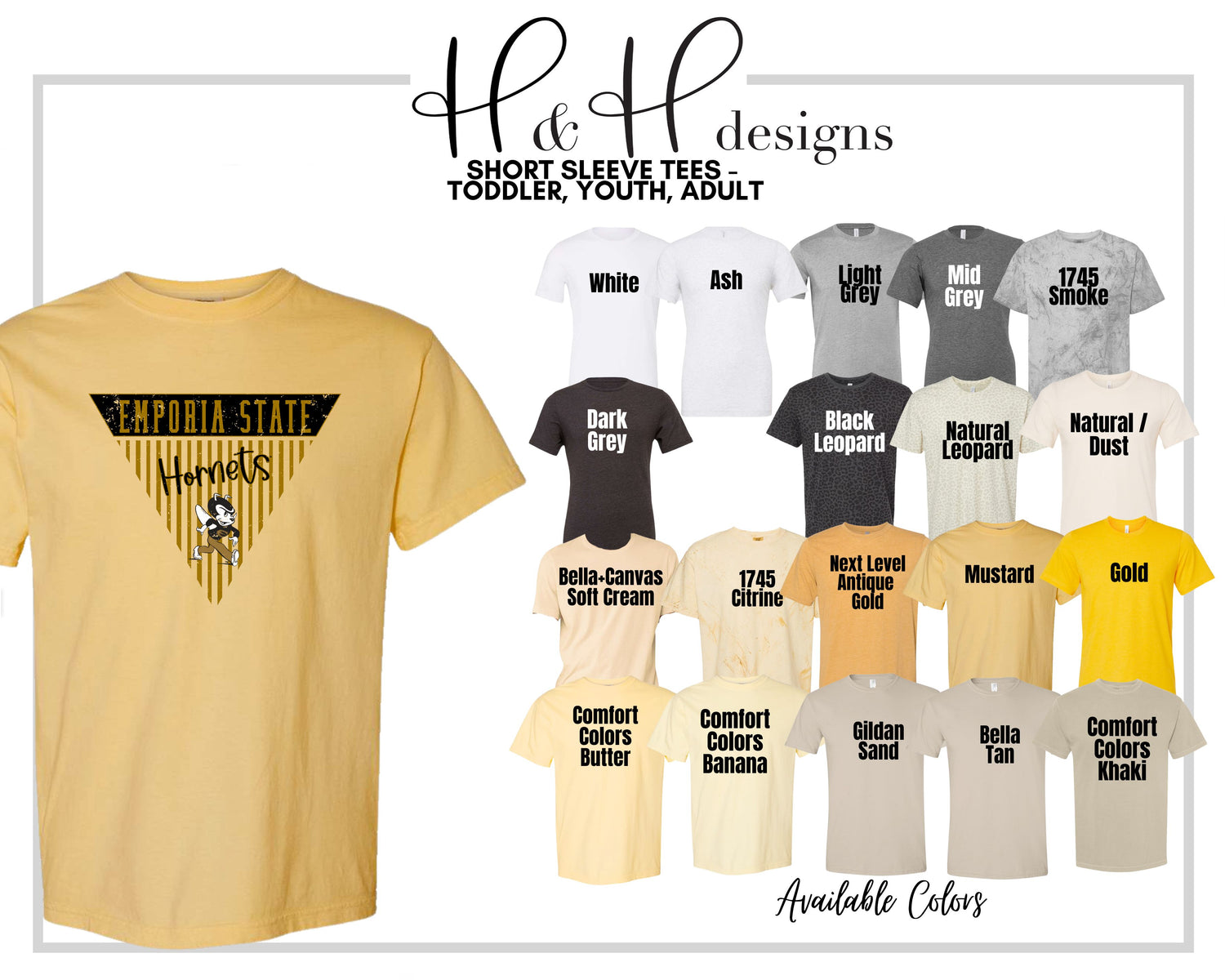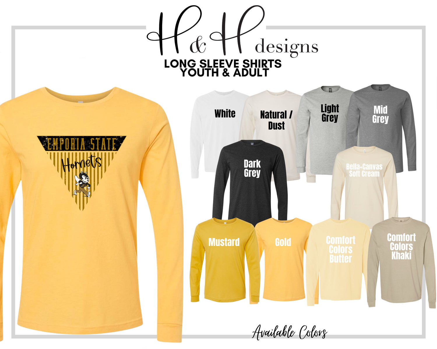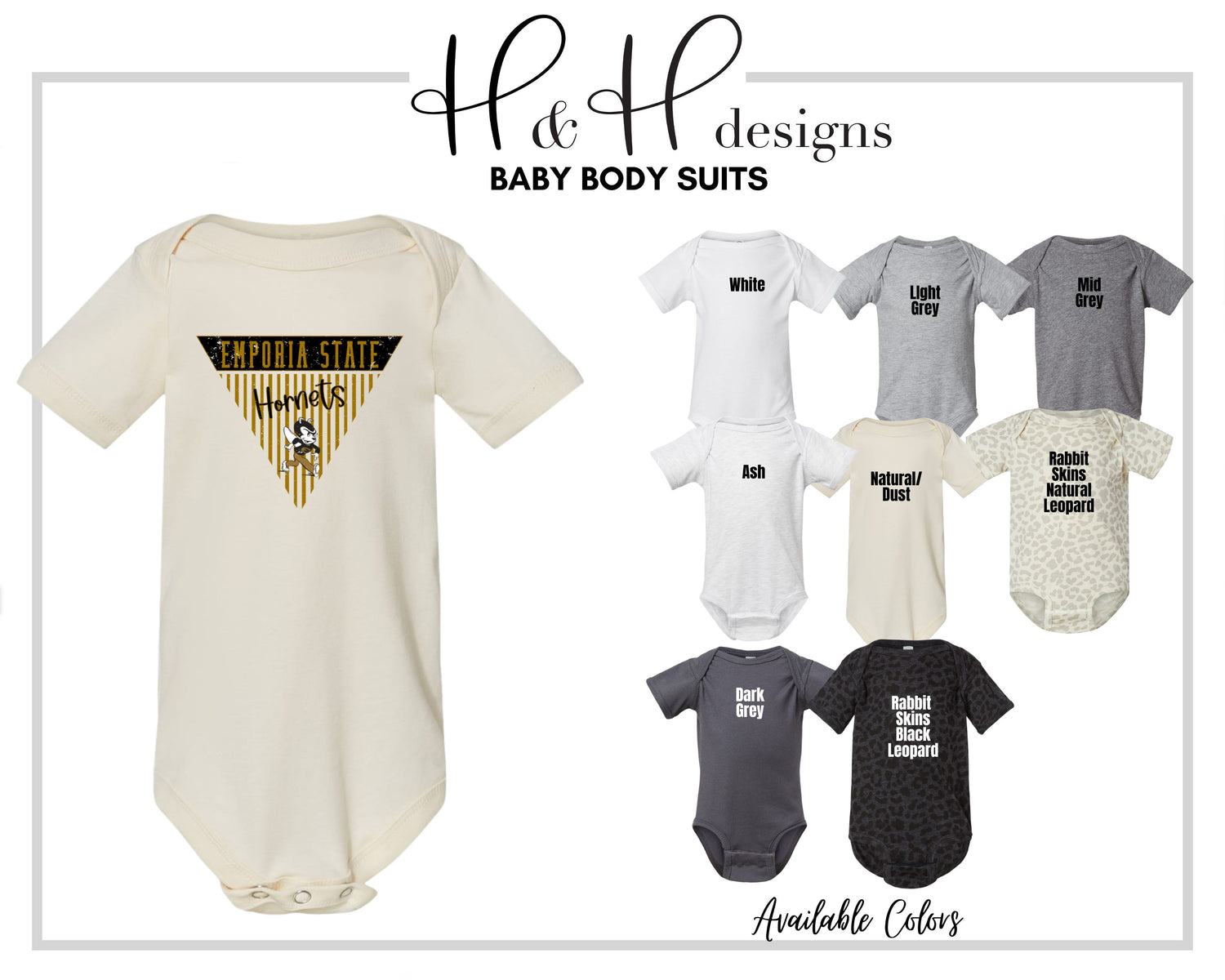 •H&H designs is a licensed Emporia State University retailer! All of our designs follow brand guidelines & are approved by the University!