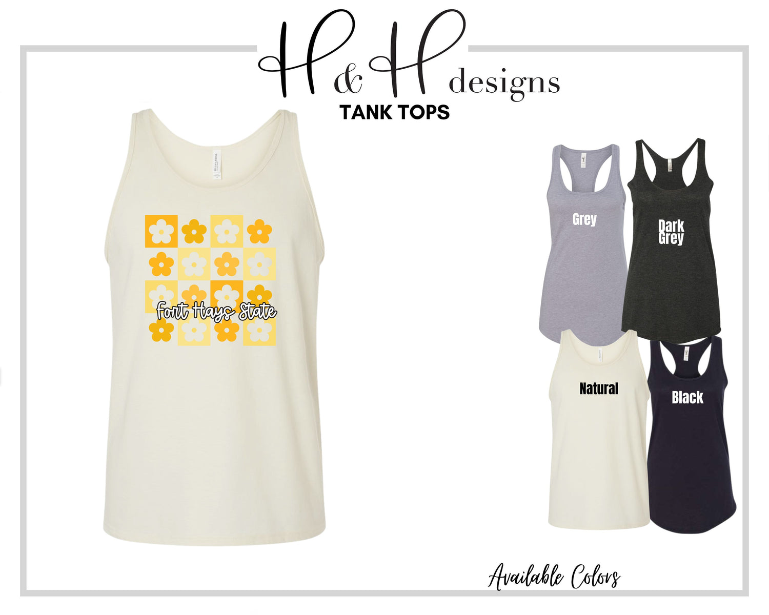 •H&H designs is a licensed Fort Hays State University retailer! All of our designs follow brand guidelines & are approved by the University!