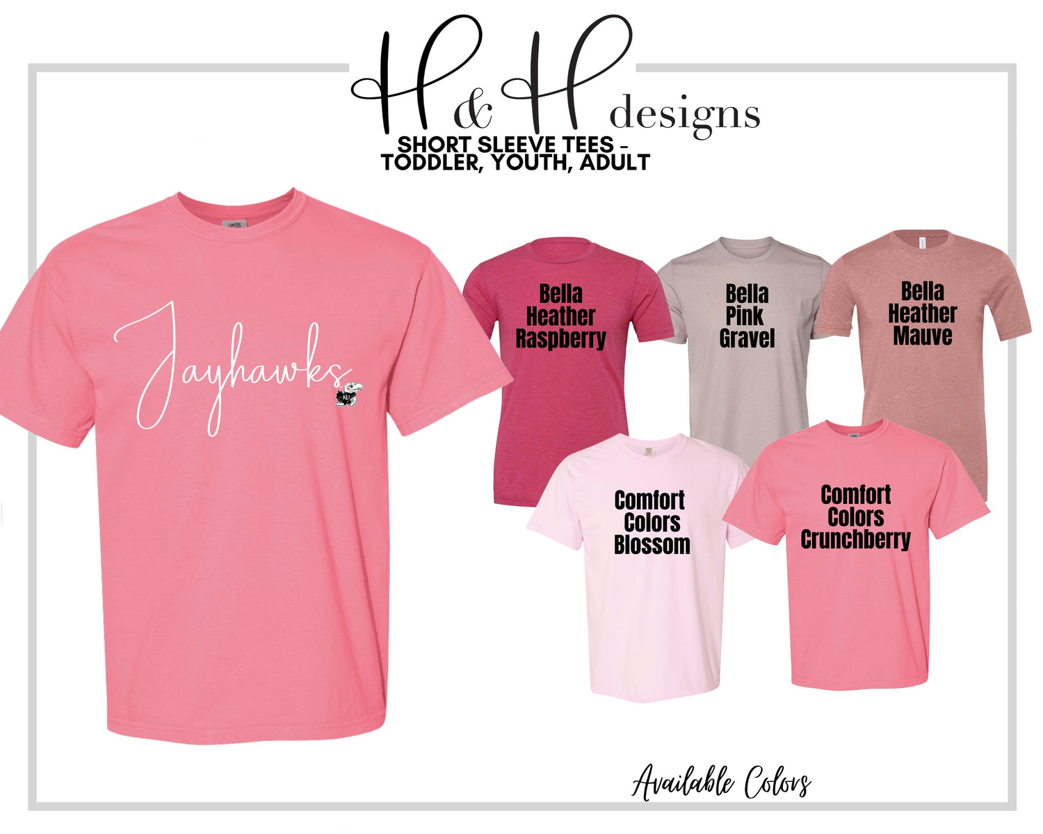 Jayhawks Swirly Script for Pink ~ Licensed Apparel ~ HHKU154