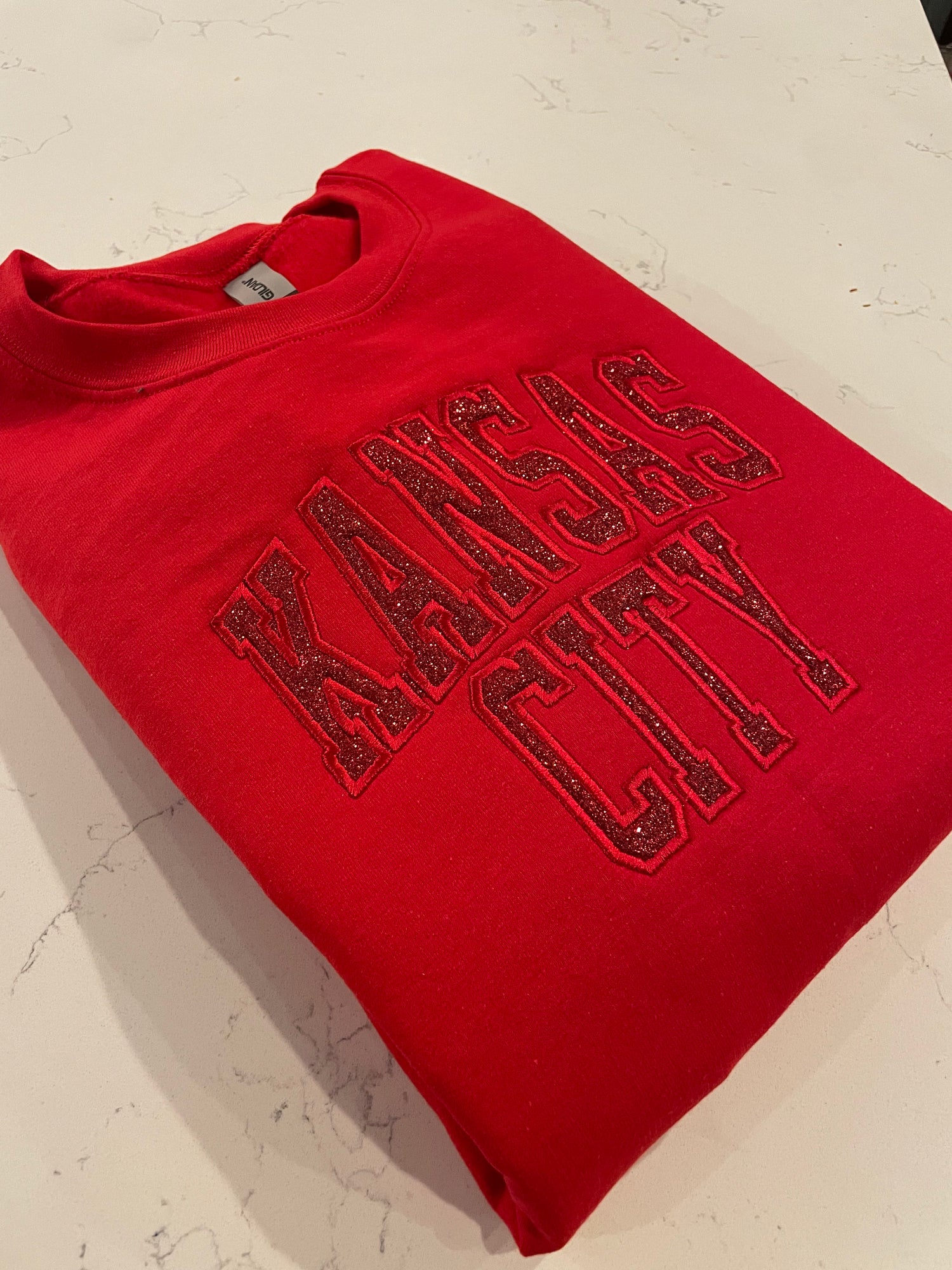 Kansas City Glitter Block - Red Monotone - REAL Glitter with Embroidery finish