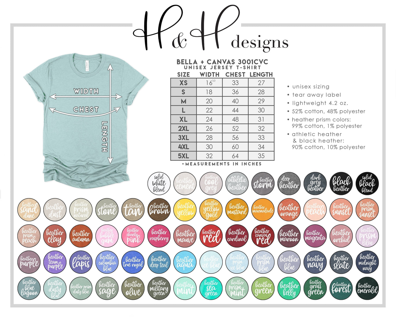 •Not sure of your size? We recommend measuring your favorite tee and comparing it to the measurements included on our color charts, or visiting us in store to try on!