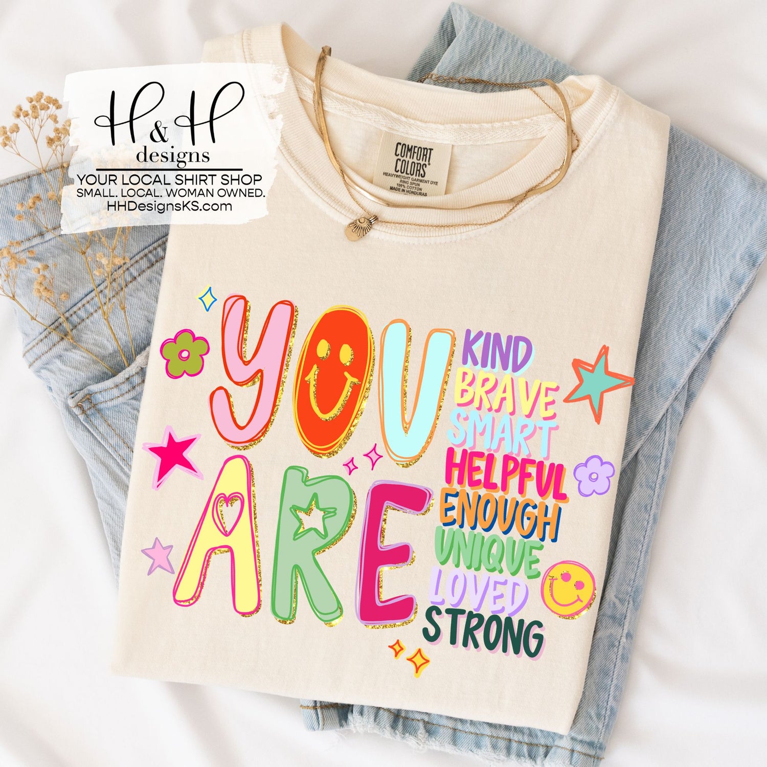 You Are....Kind Brave Smart Loved Faux Rainbow Doodle